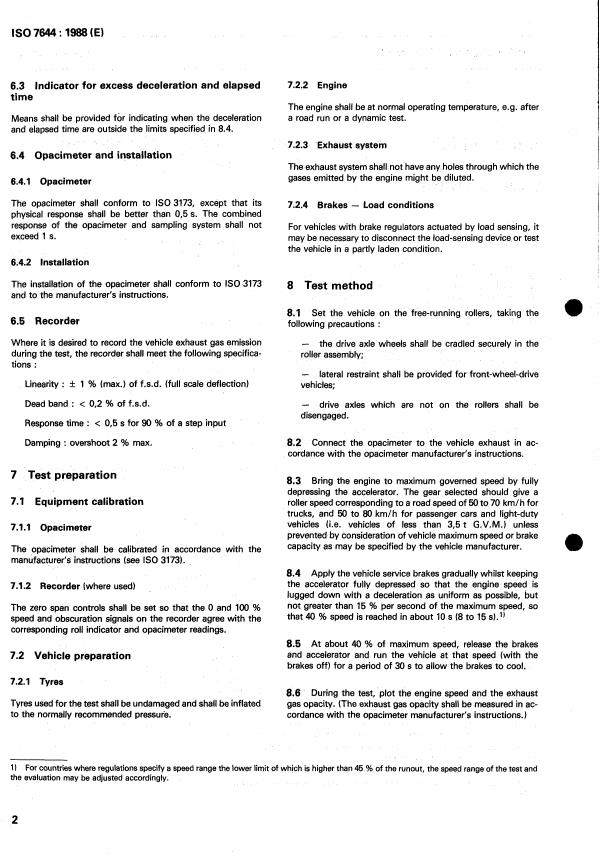 ISO 7644:1988 - Road vehicles -- Measurement of opacity of exhaust gas from compression-ignition (diesel) engines -- Lug-down test