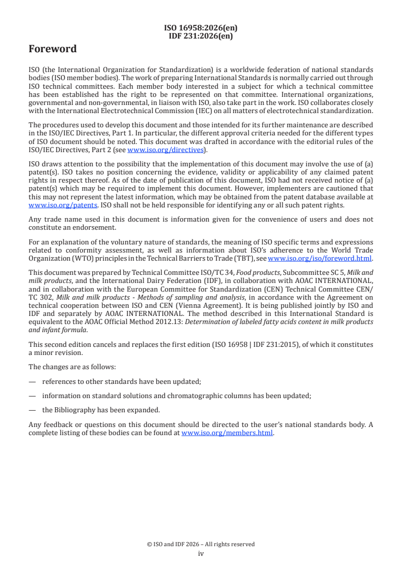 ISO 16958:2026 - Milk, milk products, infant formula and adult nutritionals — Determination of fatty acids composition — Capillary gas chromatographic method Released:14. 01. 2026
