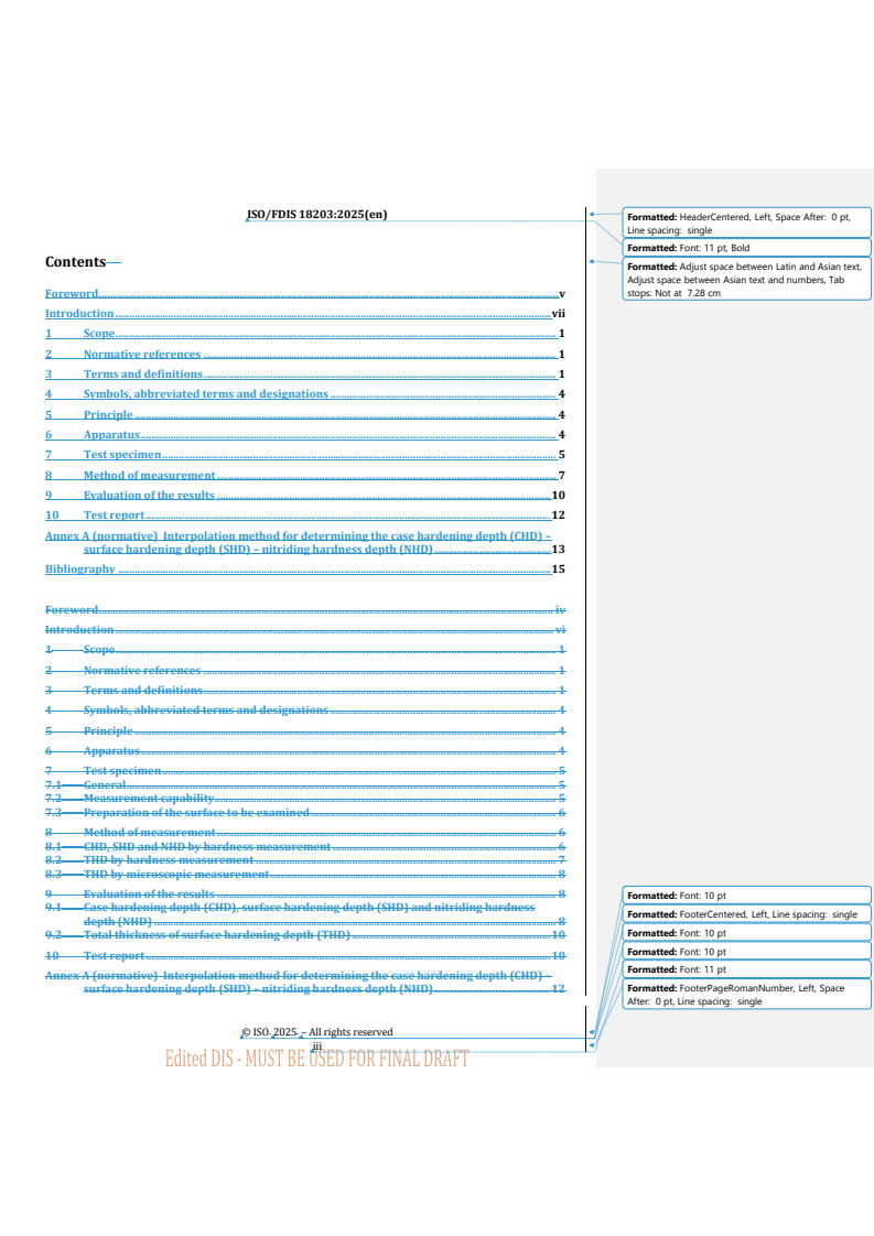 REDLINE ISO/FDIS 18203 - Steel — Determination of the thickness of surface-hardened layers Released:10/2/2025