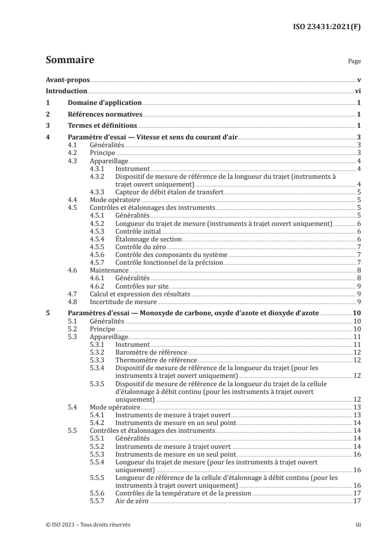 ISO 23431:2021 was prepared by ISO/TC 146 (Air quality). For instrument performance criteria, calibration standards and conformity assessment, consult other ISO and national standards on air quality instrumentation and calibration produced by ISO/TC 146 and relevant national bodies. Note that ISO 23431 does not include instrument conformance testing requirements.