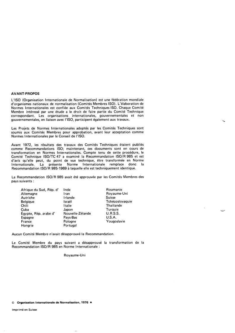 replaces IS0 Recommendation R 985-1969 to which it is technically identical.