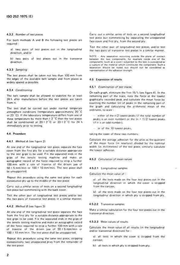 ISO 252:1975 - Conveyor belts — Minimum requirements for ply adhesion and method of test Released:5/1/1975