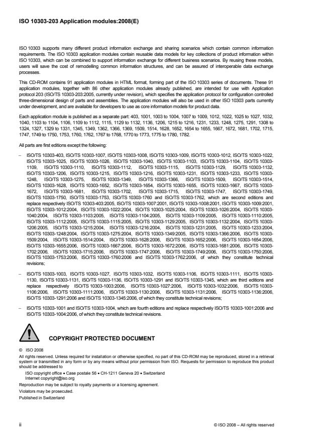 This CD-ROM contains 91 application modules in HTML format, forming part of the ISO 10303 series of documents. These 91