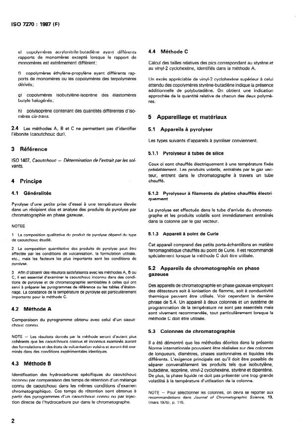 ISO 7270:1987 - Rubber -- Identification of polymers (single polymers and blends) -- Pyrolytic gas chromatographic method