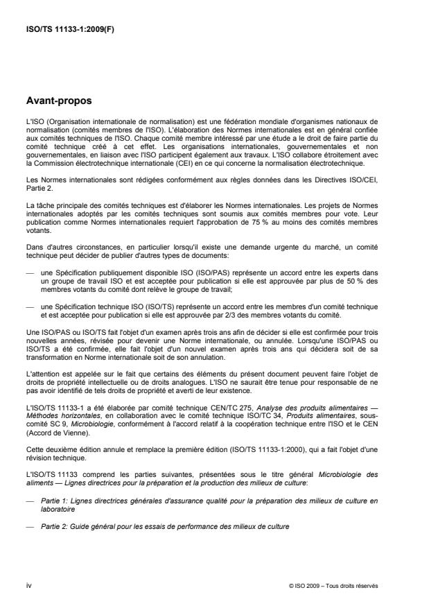 ISO/TS 11133-1:2009 - Microbiologie des aliments -- Lignes directrices pour la préparation et la production des milieux de culture