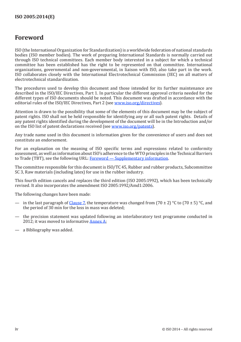 The standard was developed by ISO Technical Committee ISO/TC 45, Subcommittee SC 3, focusing on raw materials used in the rubber industry. The fourth edition revises earlier methods, updating procedural details and precision data based on recent interlaboratory test programs.