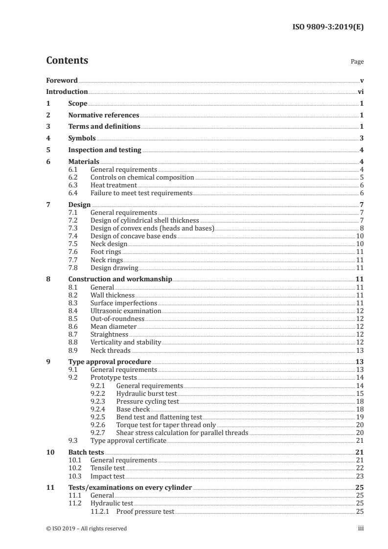 ISO 9809-3:2019 is a standard published by the International Organization for Standardization (ISO). Its full title is "Gas cylinders — Design, construction and testing of refillable seamless steel gas cylinders and tubes — Part 3: Normalized steel cylinders and tubes". This standard covers: This document specifies minimum requirements for the material, design, construction and workmanship, manufacturing processes, examination and testing at the time of manufacture for refillable seamless steel gas cylinders and tubes with water capacities up to and including 450 l. It is applicable to cylinders and tubes for compressed, liquefied and dissolved gases and for normalized or normalized and tempered steel cylinders and tubes.