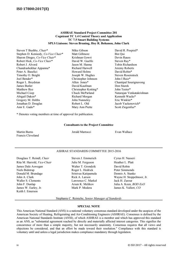 ISO 17800:2017 is a standard published by the International Organization for Standardization (ISO). Its full title is "Facility smart grid information model". This standard covers: ISO 17800:2017 provides the basis for common information exchange between control systems and end use devices found in single - and multi-family homes, commercial and institutional buildings, and industrial facilities that is independent of the communication protocol in use. It provides a common basis for electrical energy consumers to describe, manage, and communicate about electrical energy consumption and forecasts. ISO 17800:2017 defines a comprehensive set of data objects and actions that support a wide range of energy management applications and electrical service provider interactions including: a) on-site generation, b) demand response, c) electrical storage, d) peak demand management, e) forward power usage estimation, f) load shedding capability estimation, g) end load monitoring (sub metering), h) power quality of service monitoring, i) utilization of historical energy consumption data, and j) direct load control.