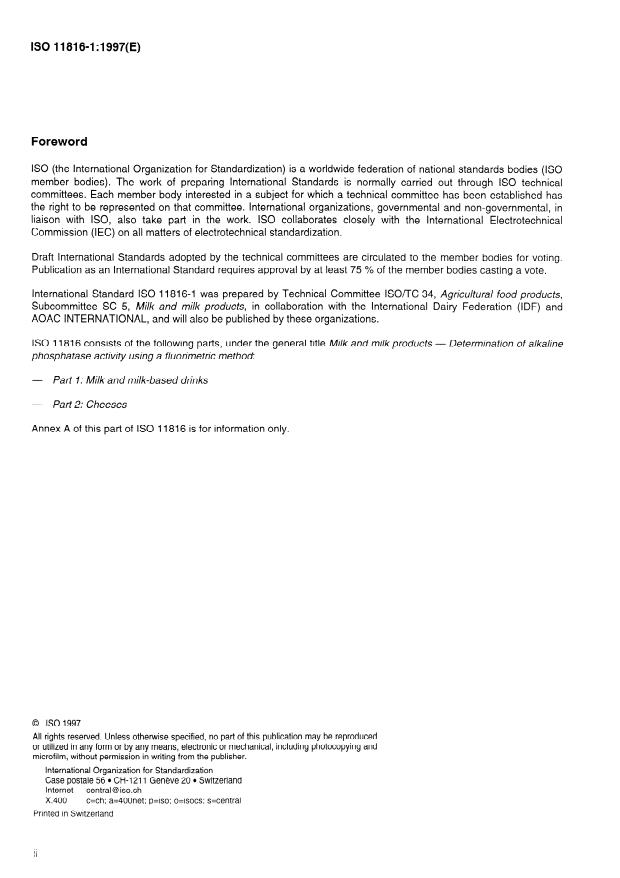 International Standard IS0 11816-I was prepared by Technical Committee lSO/TC 34, Agricultural food products,