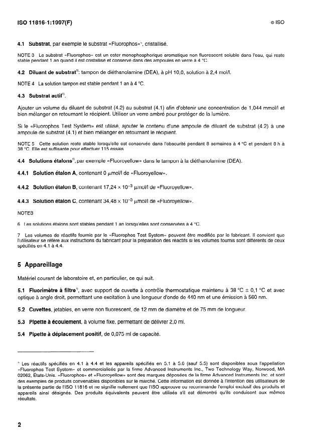 NOTE 3 Le substrat <> est un ester monophosphorique aromatique non fluorescent soluble dans l’eau, qui reste