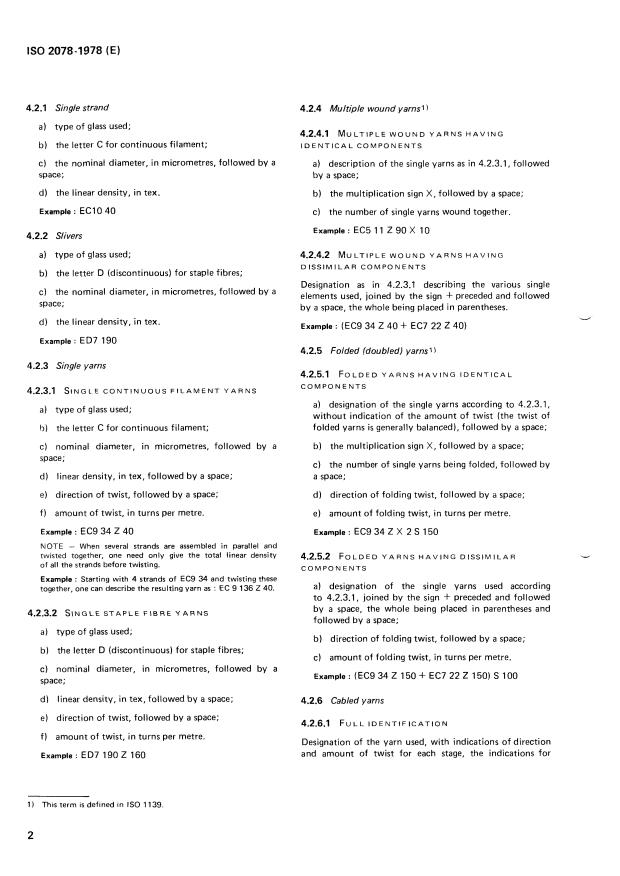 ISO 2078:1978 is a standard published by the International Organization for Standardization (ISO). Its full title is "Textile glass yarns — Designation". This standard covers: Textile glass yarns — Designation