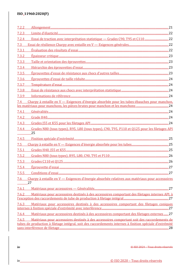 REDLINE ISO 11960:2020 - Industries du pétrole et du gaz naturel — Tubes d'acier utilisés comme tubes de cuvelage ou tubes de production dans les puits Released:7/12/2024