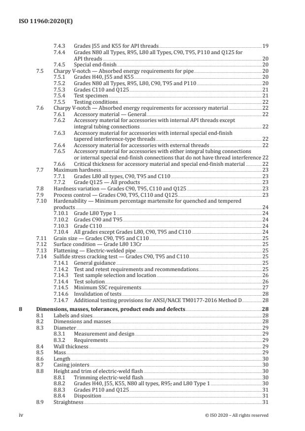 ISO 11960:2020 focuses on the practical, quality and inspection requirements for well tubulars without specifying thread dimensions (see API Spec 5B for gauging and thread dimensions). Major technical topics include: