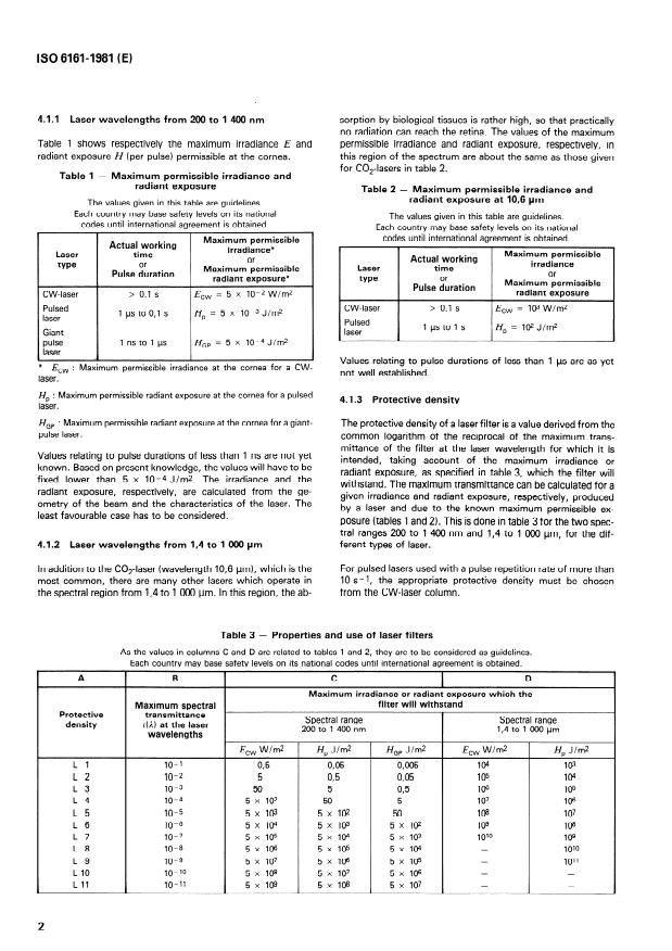 ISO 6161:1981 - Personal eye-protectors -- Filters and eye-protectors against laser radiation