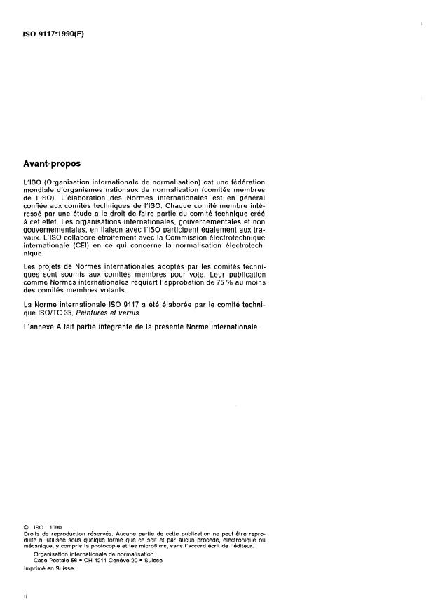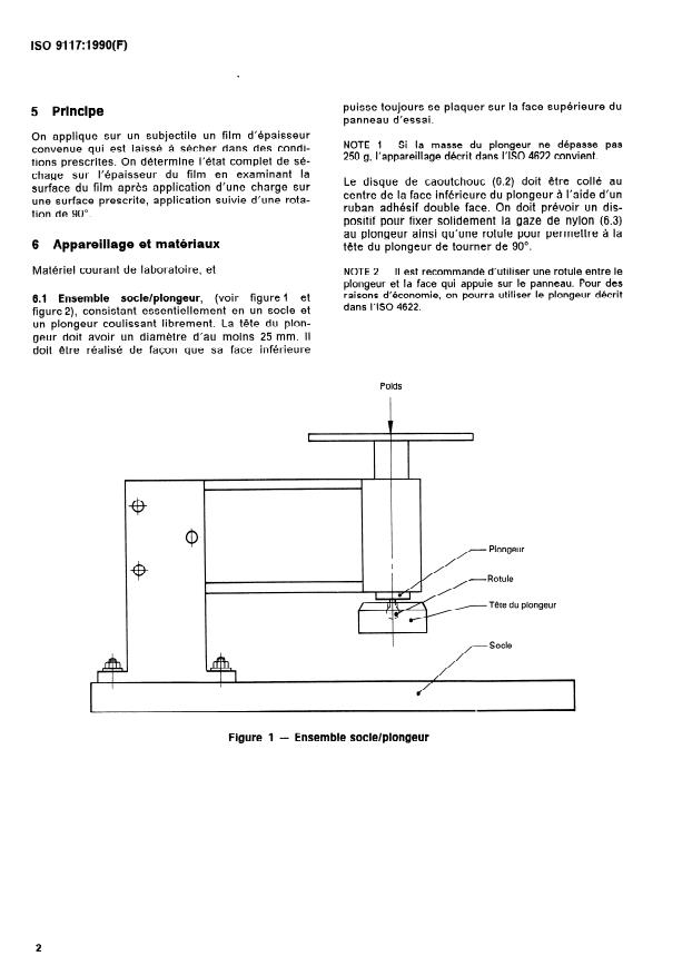 ISO 9117:1990 is a standard published by the International Organization for Standardization (ISO). Its full title is "Paints and varnishes — Determination of through-dry state and through-dry time — Method of test". This standard covers: La présente Norme internationale fait partie d'une série de normes traitant de l'échantillonnage et des essais des peintures, vernis et produits assimilés. Elle prescrit une méthode d'essai tout ou rien qui permet de s'assurer, dans des conditions normalisées, qu'un revêtement à une seule couche ou multicouche de peinture ou de produits assimilés est parvenu, après un temps de séchage prescrit, au stade de «séchage à coeur». On peut également utiliser cette méthode d'essai pour déterminer le temps nécessaire pour arriver à ce stade.