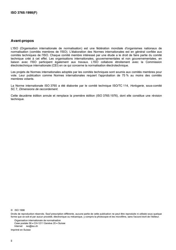 International Standard ISO 3765 was prepared by Technical Committee ISO/TC 114, Horology, Subcommittee