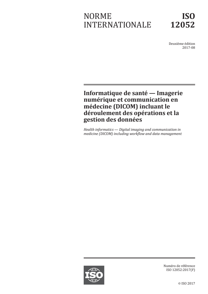 ISO 12052:2017 - Informatique de santé — Imagerie numérique et communication en médecine (DICOM) incluant le déroulement des opérations et la gestion des données/17/2017