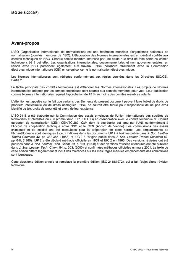 ISO 2418 was prepared by the Physical Test Commission of the International Union of Leather Technologists and