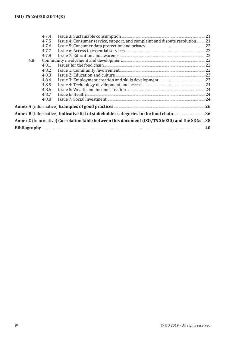 ISO/TS 26030 expands ISO 26000’s framework to address food-chain specifics. Major topics include: