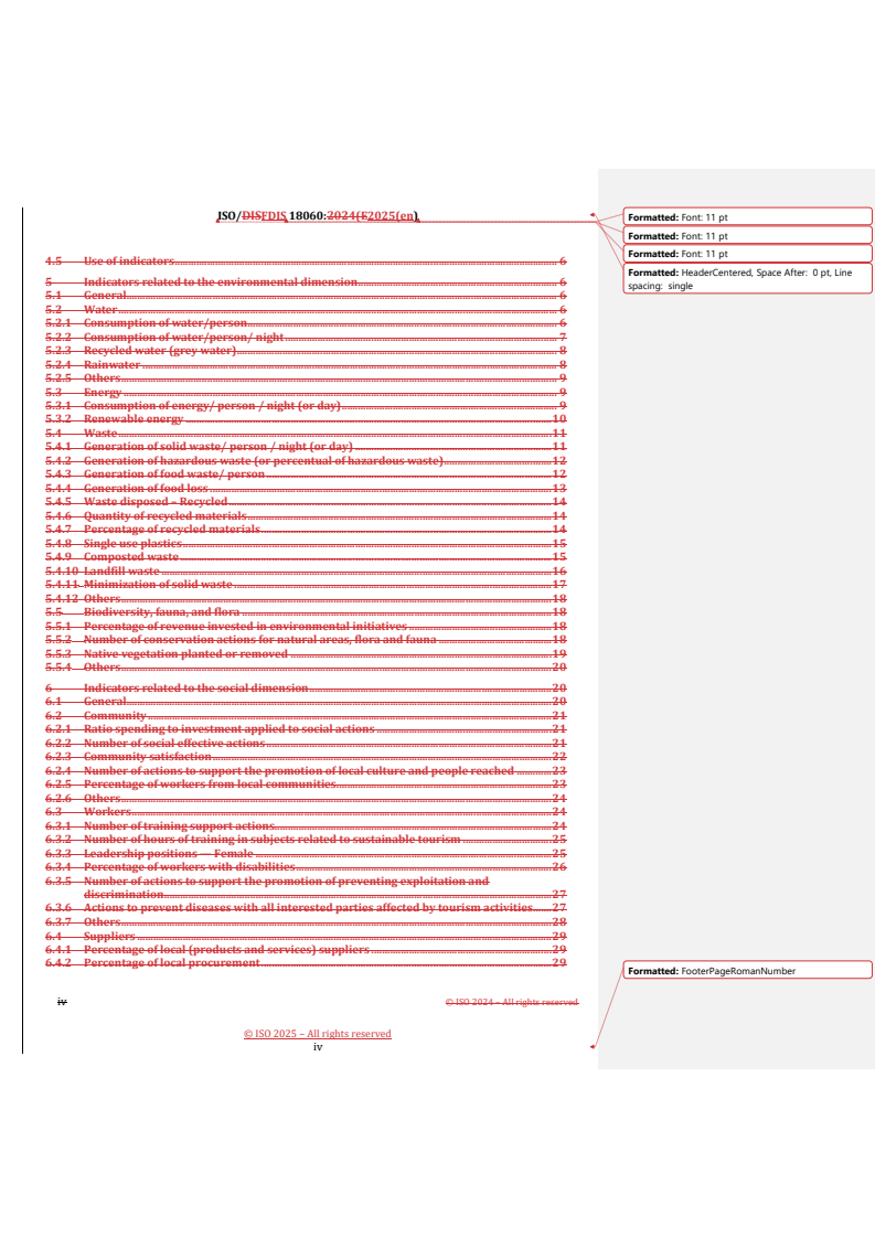 REDLINE ISO/FDIS 18060 - Sustainable tourism — Indicators for organizations in the tourism value chain — Requirements and guidance for use Released:28. 08. 2025