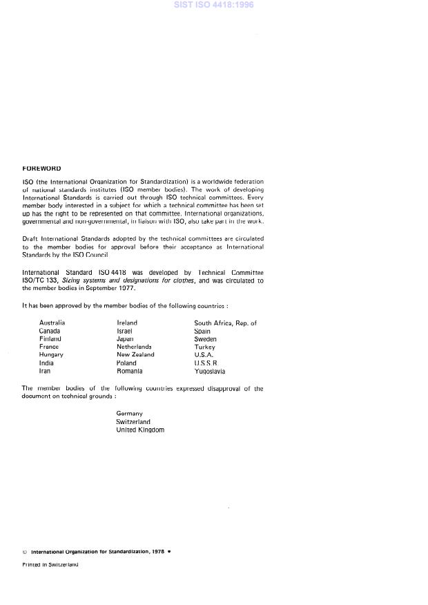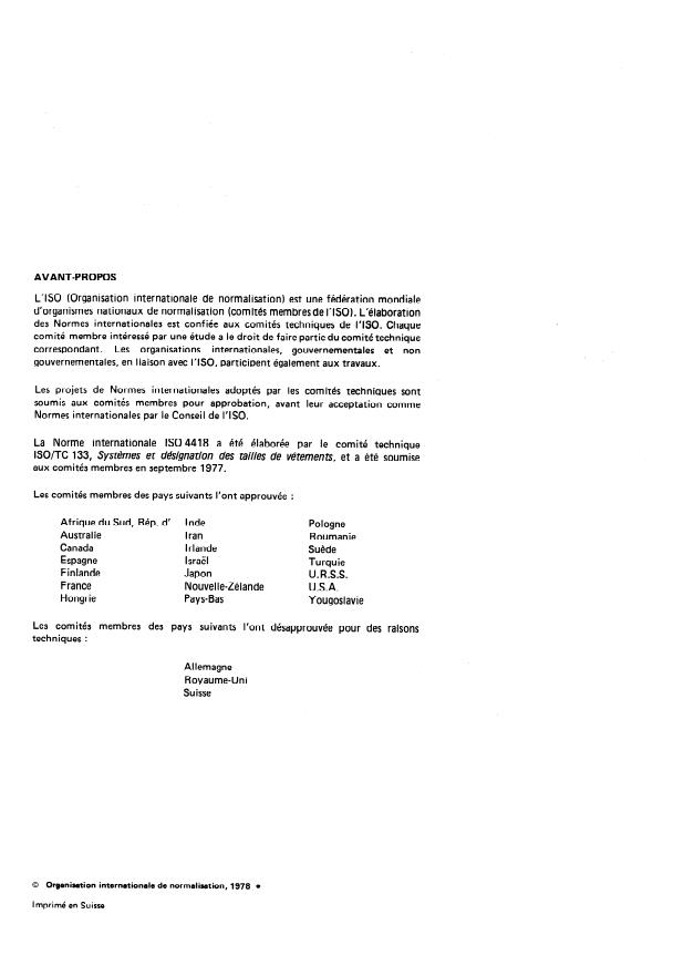ISO/TC 133, Sizing Systems and designations for clothes, and was circulated to