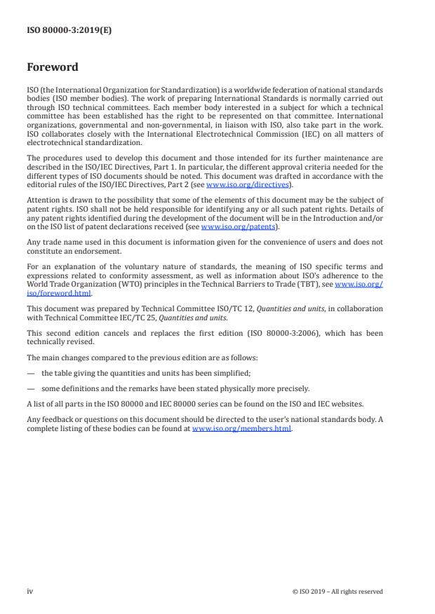 Cette deuxième édition annule et remplace la première édition (ISO 80000-3:2006), qui a fait l’objet