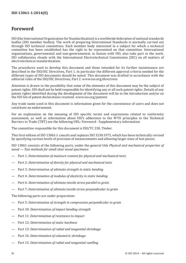 ISO 13061-1:2014 is part of a comprehensive series on the physical and mechanical properties of small clear wood specimens. Related parts include: