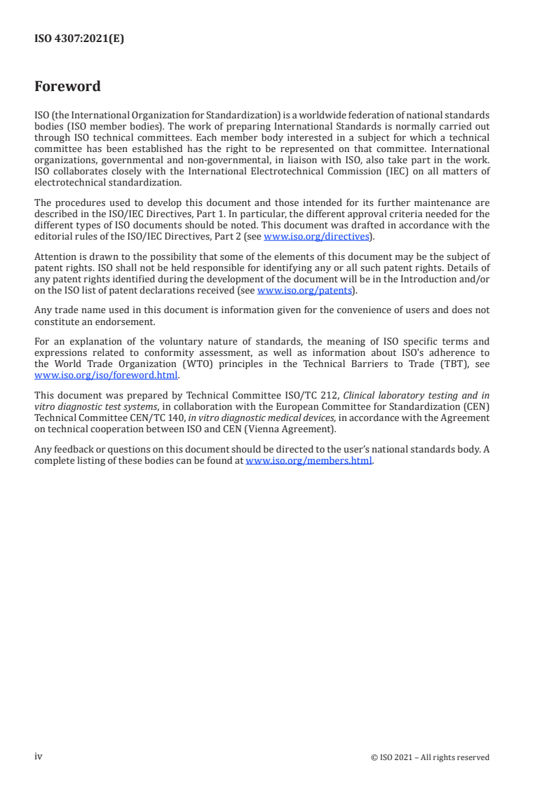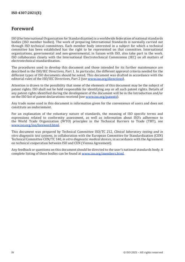 ISO 4307:2021 is classified under the following ICS (International Classification for Standards) categories: 11.100.10 - In vitro diagnostic test systems. The ICS classification helps identify the subject area and facilitates finding related standards.