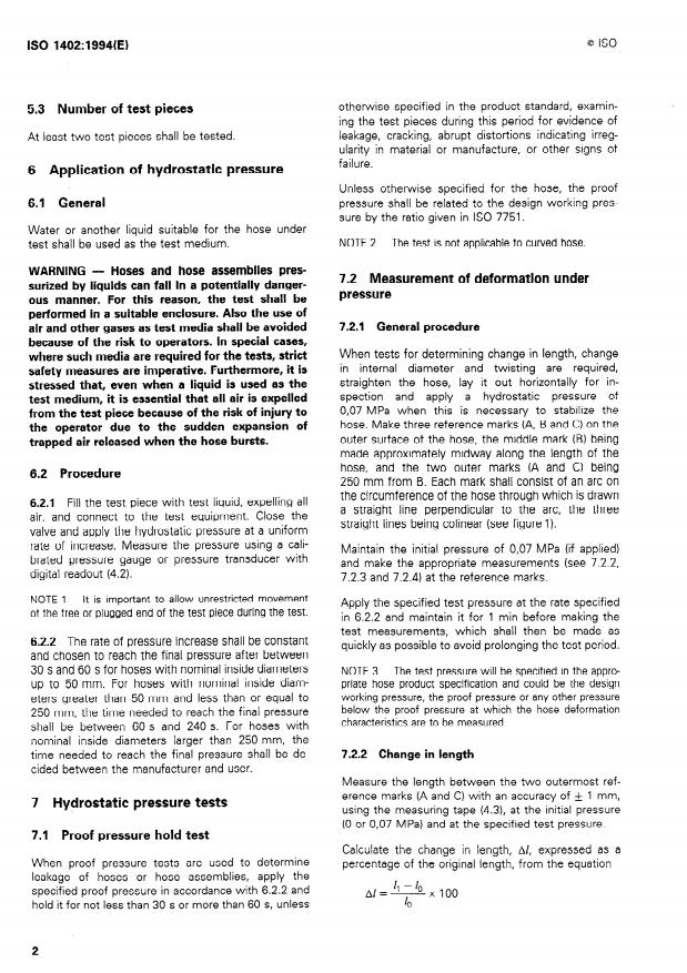 ISO 1402:1994 - Rubber and plastics hoses and hose assemblies -- Hydrostatic testing