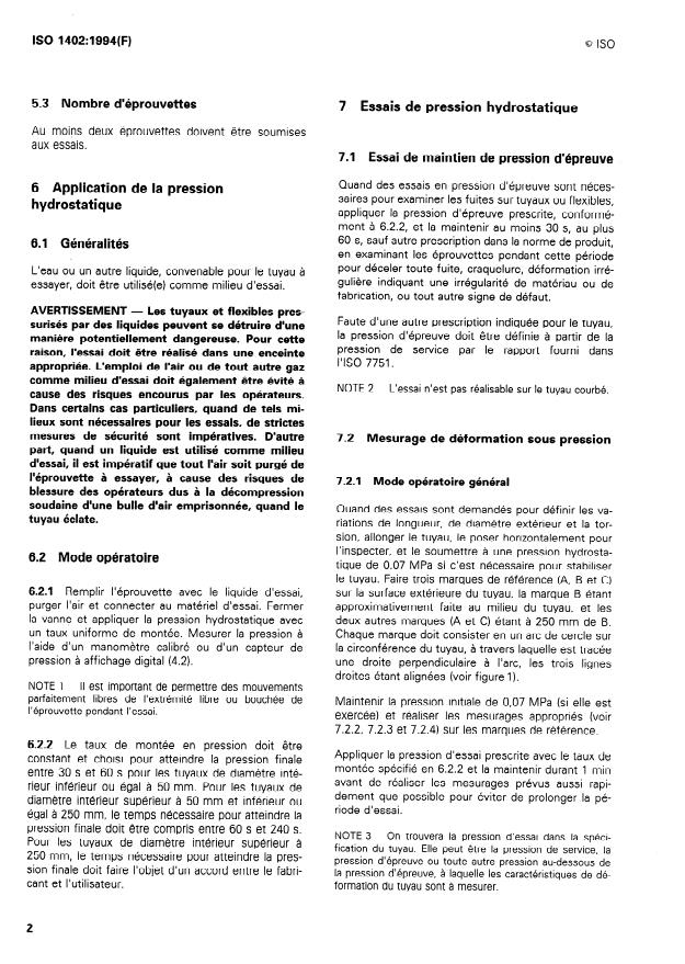 ISO 1402:1994 - Tuyaux et flexibles en caoutchouc et en plastique -- Essais hydrostatiques