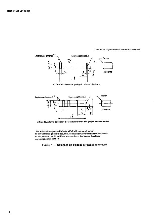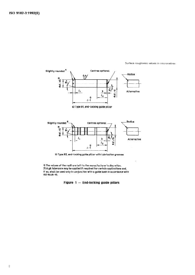 Specifies the dimensions and tolerances, gives guidance on materials, and specifies the hardness and the designation. Those guide pillars may be of type B1, end-locking, or type B2, end-locking with lubrication grooves.