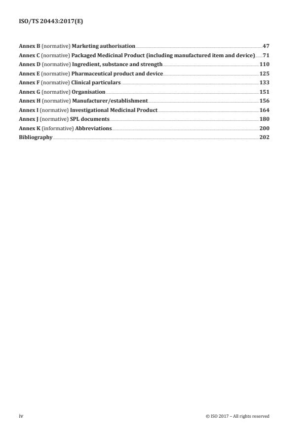 - Annexes (normative/informative): Detailed annexes cover medicinal product, marketing authorisation, packaged medicinal product, ingredient/substance/strength, pharmaceutical product, clinical particulars, organisations/manufacturers, investigational medicinal products, and SPL documents.