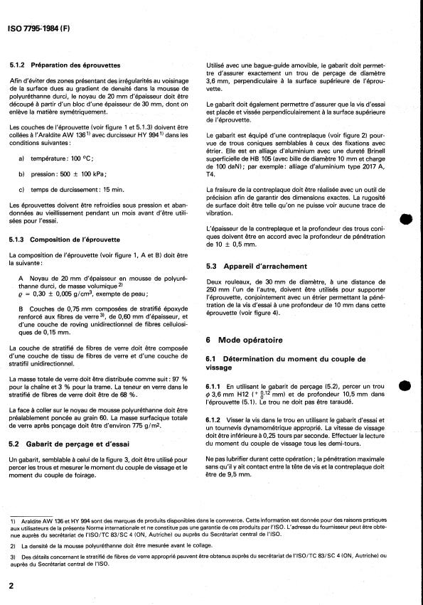 visant à déterminer les caractéristiques de montage et de tenue tions données dans I'ISO 7794 sont applicables.