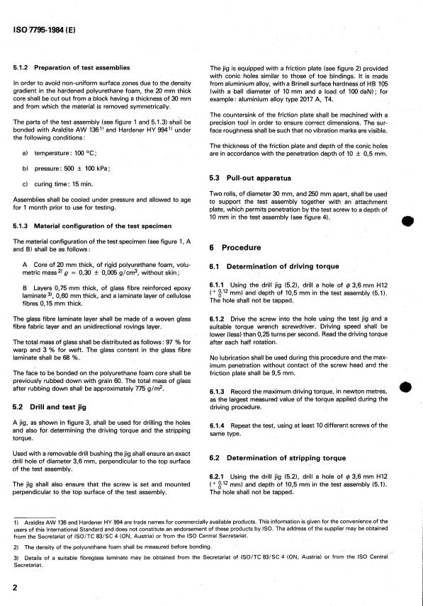 ISO 7795:1984 is a standard published by the International Organization for Standardization (ISO). Its full title is "Cross-country skis — Ski binding screws — Test methods". This standard covers: Cross-country skis — Ski binding screws — Test methods
