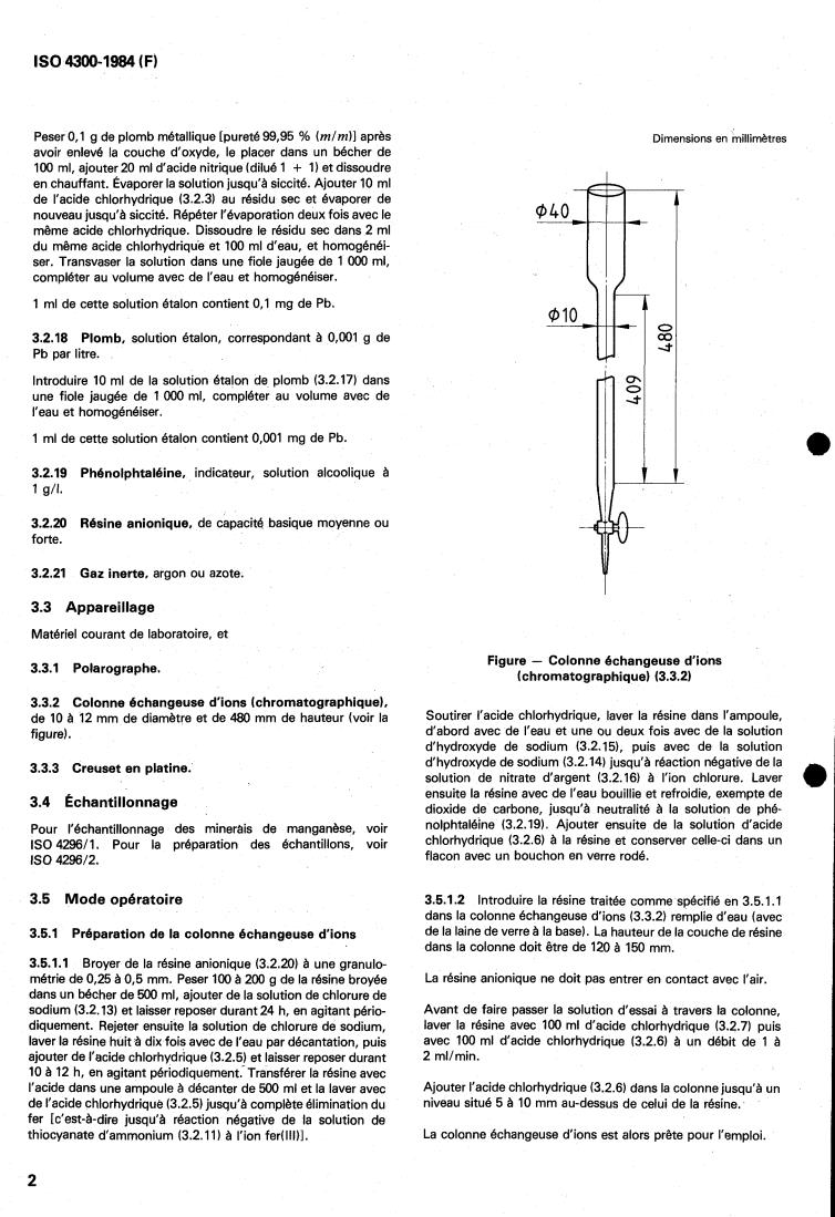 ISO 4300:1984 is a standard published by the International Organization for Standardization (ISO). Its full title is "Manganese ores and concentrates — Determination of lead content — Polarographic methods". This standard covers: Manganese ores and concentrates — Determination of lead content — Polarographic methods