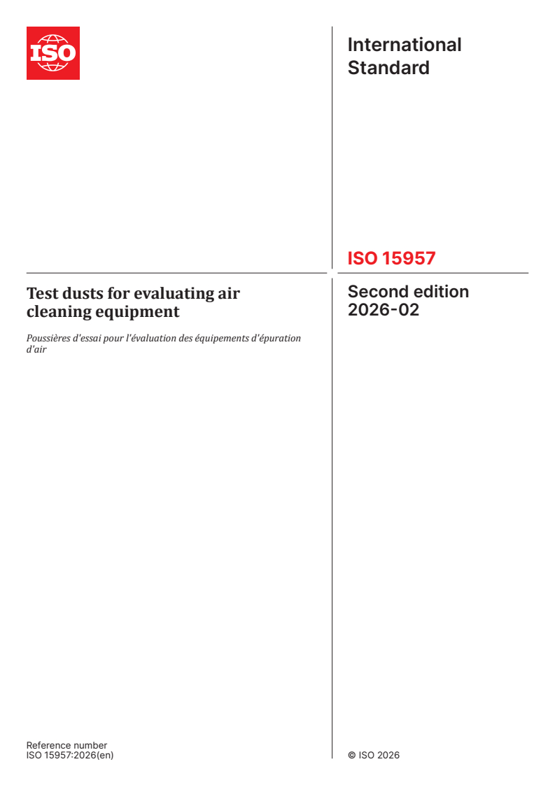 ISO 15957:2026 - Test dusts for evaluating air cleaning equipment
