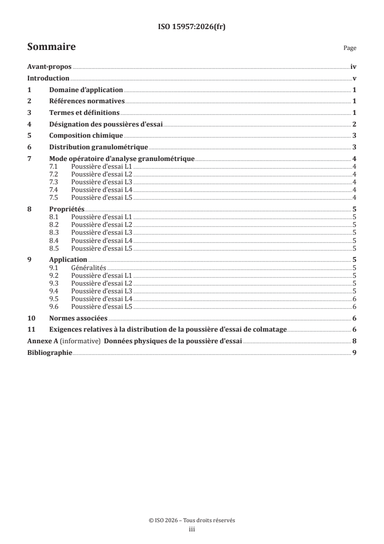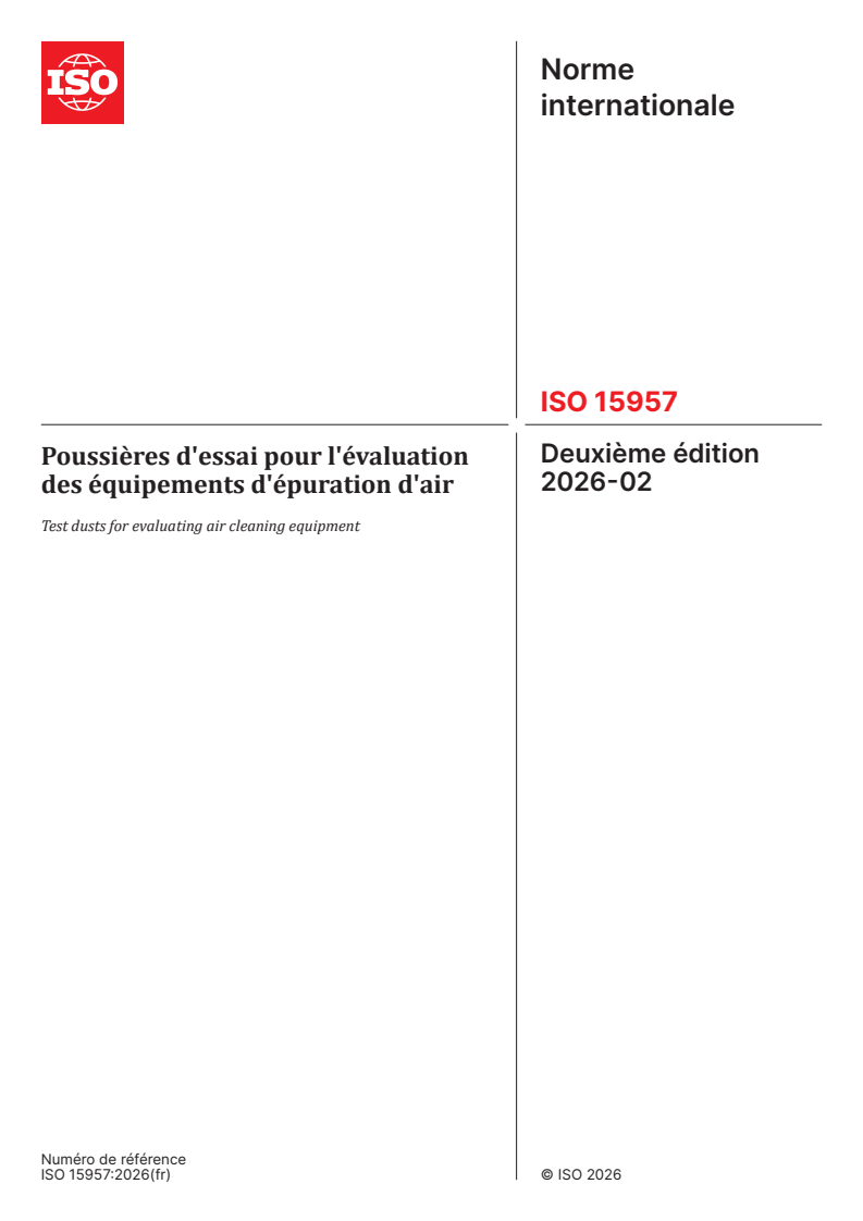 ISO 15957:2026 - Poussières d'essai pour l'évaluation des équipements d'épuration d'air