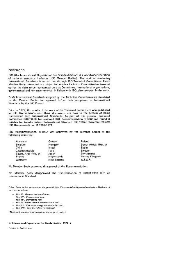 ISO 1992-1:1974 - Commercial refrigerated cabinets -- Methods of test