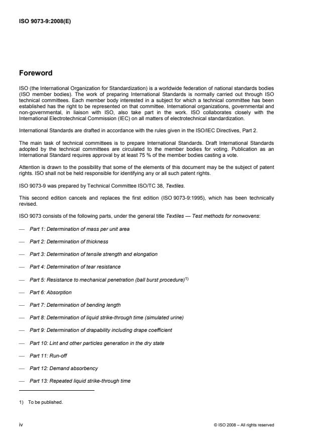 ISO 9073-9:1995 - Textiles - Test methods for nonwovens - Part 9: Determination of drape coefficient - Effective Date