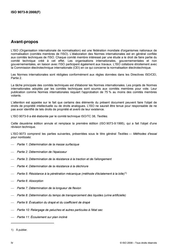 ISO 9073-9:2008 is a standard published by the International Organization for Standardization (ISO). Its full title is "Textiles - Test methods for nonwovens - Part 9: Determination of drapability including drape coefficient". This standard covers: ISO 9073-9:2008 specifies a test method that is used to determine the drape coefficient of fabrics (nonwovens, wovens and knitted fabrics).