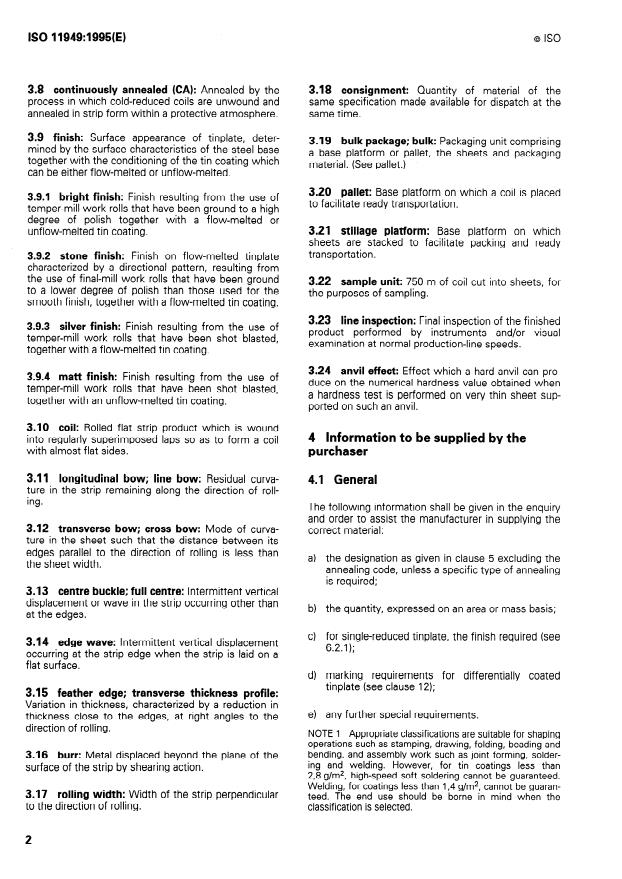 ISO 11949:1995 - Cold-reduced electrolytic tinplate