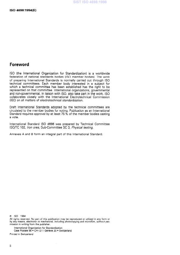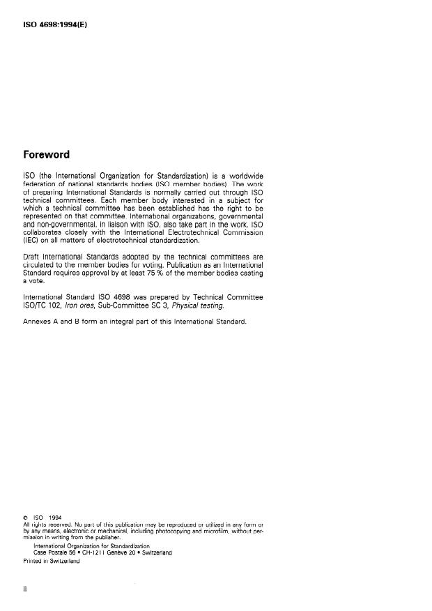 ISO 4698:1994 - Iron ore pellets -- Determination of relative free-swelling index