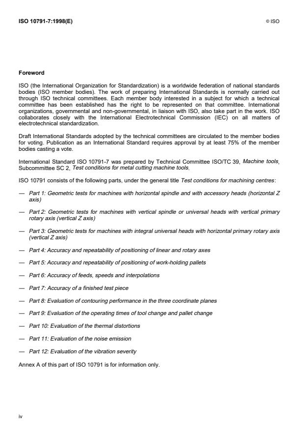 ISO 10791-7:2014 - Test conditions for machining centres — Part 7: Accuracy of finished test pieces - Effective Date