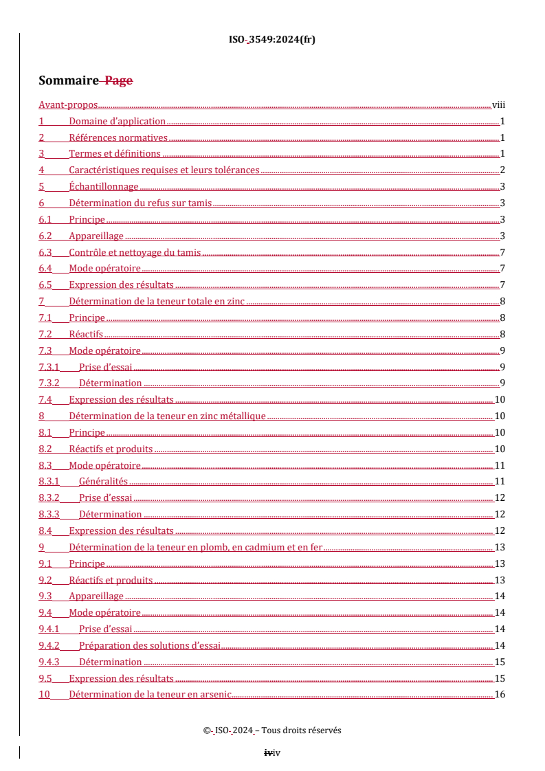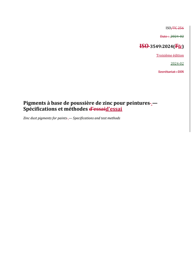 REDLINE ISO 3549:2024 - Pigments à base de poussière de zinc pour peintures — Spécifications et méthodes d'essai Released:3/26/2024