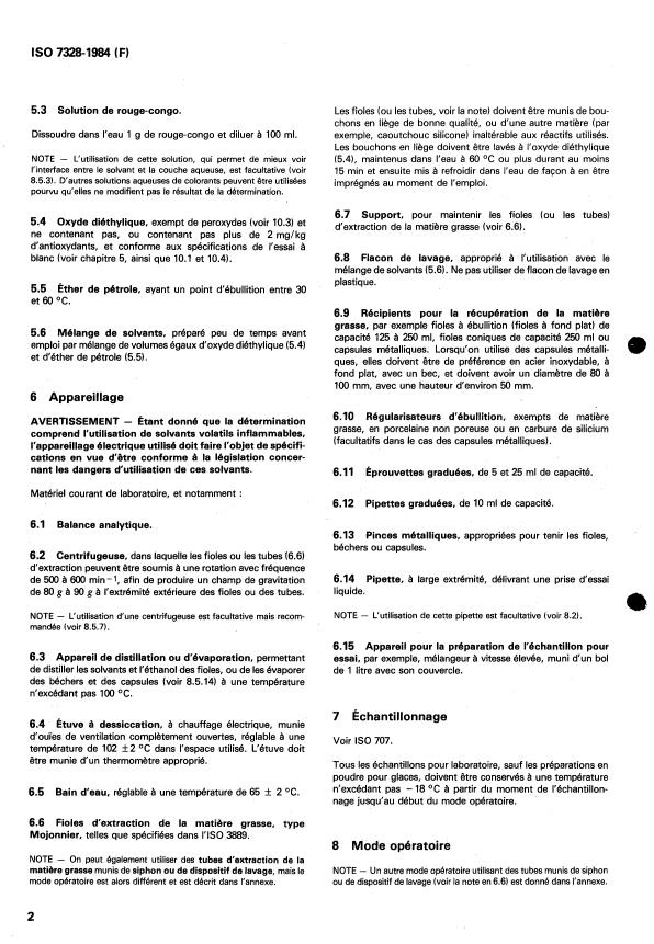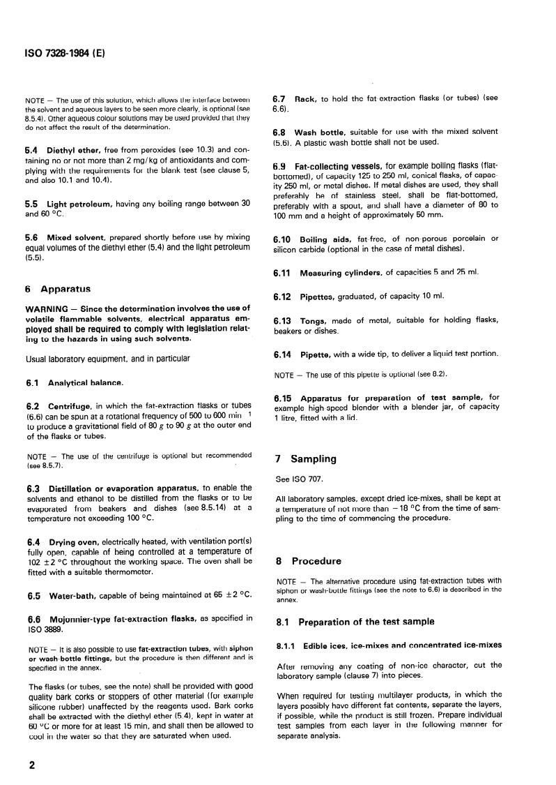 ISO 7328:1984 is a standard published by the International Organization for Standardization (ISO). Its full title is "Milk-based edible ices and ice-mixes — Determination of fat content — Roese-Gottlieb gravimetric method (Reference method)". This standard covers: Milk-based edible ices and ice-mixes — Determination of fat content — Roese-Gottlieb gravimetric method (Reference method)