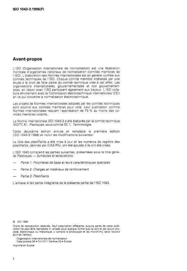 ISO 1043-3:1996 - Plastiques -- Symboles et abréviations