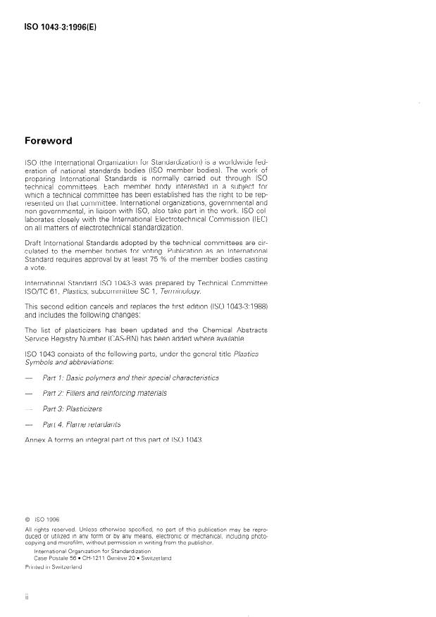 INTERNATIONAL STANDARD ISO 1043-3 Second edition 1996-04-15 Plastics - Symbols and abbreviated terms - Part 3: Plasticizers Plas tiques - Symboles et abrhations - Partie 3: Plas tifian ts Reference number ISO 1043-3:1996( E) SIST ISO 1043-3:1996