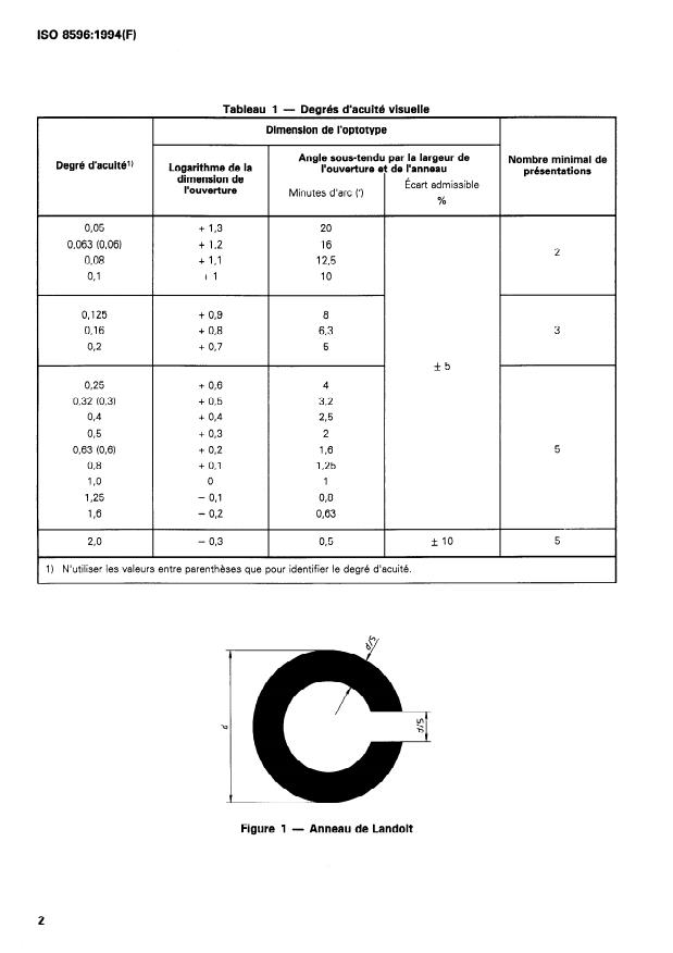 de 0,4 a 1,O 2 x le diamétre de l’anneau de Landolt