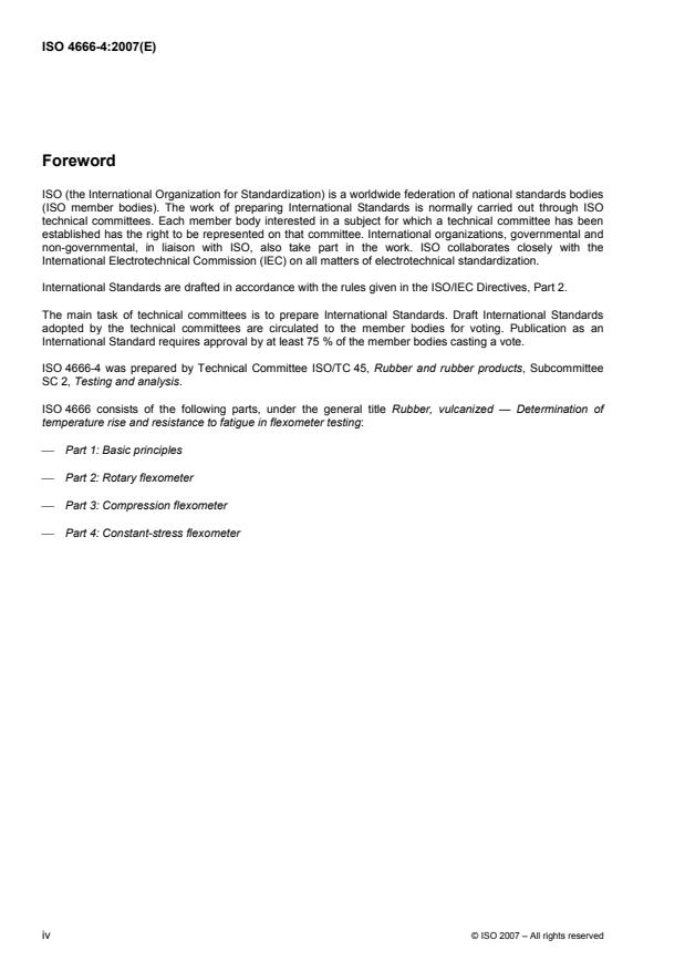 ISO 4666-4:2007 - Rubber, vulcanized -- Determination of temperature rise and resistance to fatigue in flexometer testing