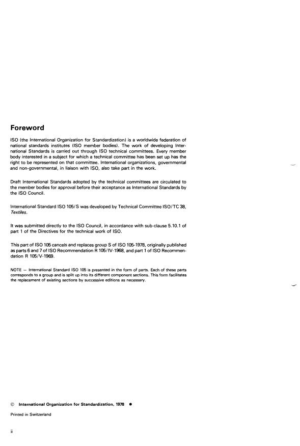 International Standard IS0 105/S was developed by Technical Committee ISO/TC 38,